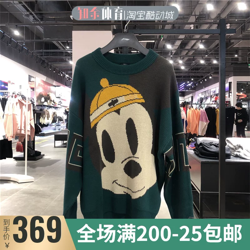 Li Ning áo len nam và nữ cùng phong cách 2020 mùa đông mới Áo len dệt kim đồng thương hiệu Cai Chengyu của Disney AMBQ018-1-3 - Thể thao lông cừu / jumper