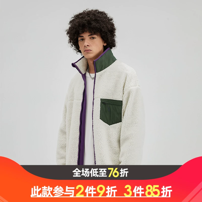 ZONEiD mùa đông mới thể thao giải trí cừu nhung áo khoác bông nhung xu hướng của nam giới cổ đứng túi áo khoác ấm áp phù hợp - Quần áo độn bông thể thao