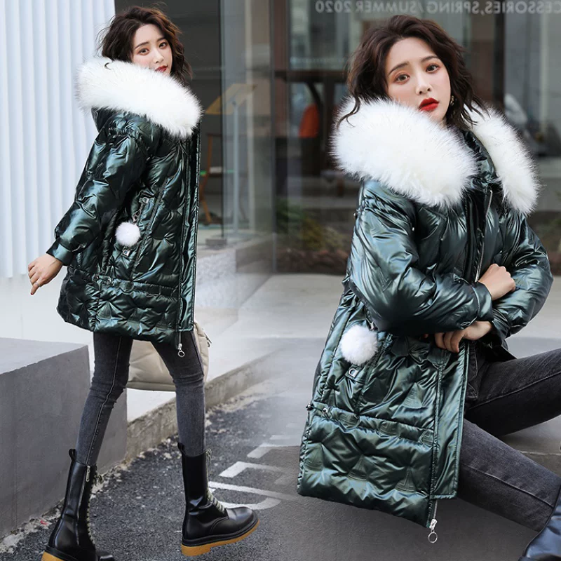 Nữ áo khoác đệm dài từ trung xuống 2020 mùa đông mới phong cách Hồng Kông Hàn Quốc giản dị sáng mặt áo khoác đệm rộng - Quần áo độn bông thể thao