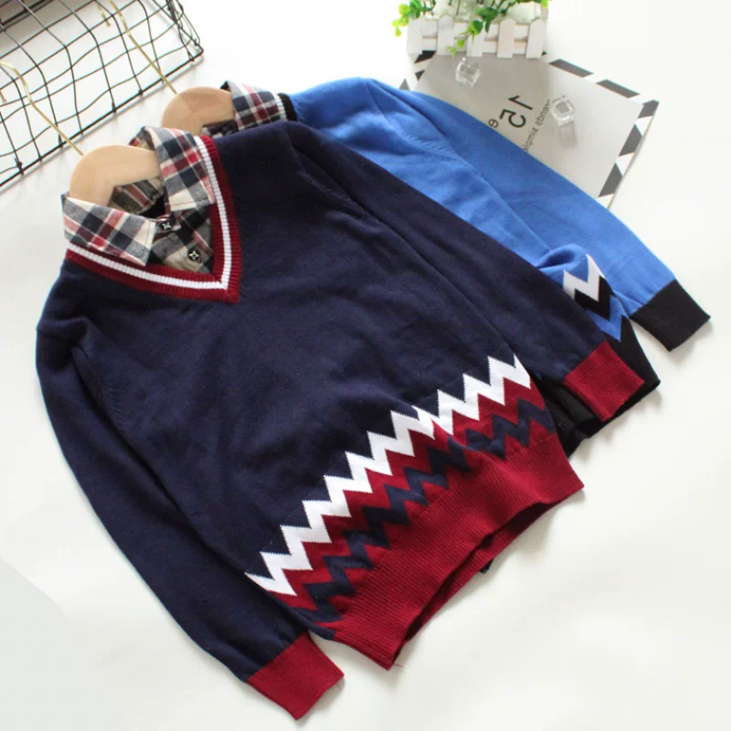 Áo len chui đầu mỏng bé trai mập, áo len trẻ em loại lớn, áo len trẻ em dáng rộng, thêm phân tăng cotton xuân thu - Áo len thể thao / dòng may
