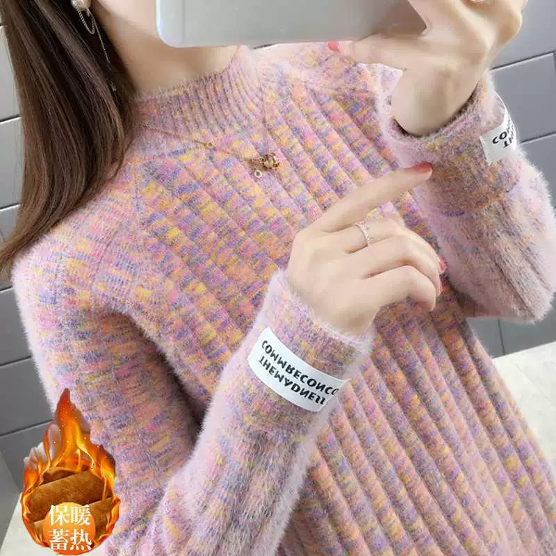 Áo len lông cừu lông cừu của phụ nữ dày dệt kim đáy áo sơ mi phong cách phương Tây lỏng lẻo bên trong nửa cao cổ áo trên cùng năm 2020 mùa thu và mùa đông mới - Áo len thể thao / dòng may