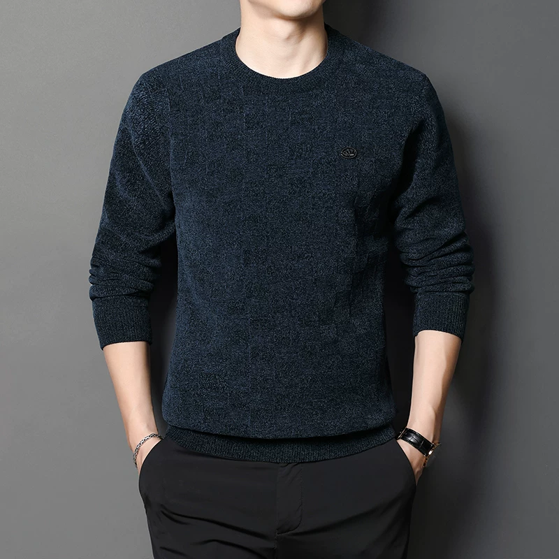 Mùa thu và mùa đông của nam giới cộng với áo len ấm áp nhung cổ tròn giản dị mặc một lần dệt kim hàng đầu cho người trung niên và trẻ trung - Áo len thể thao / dòng may