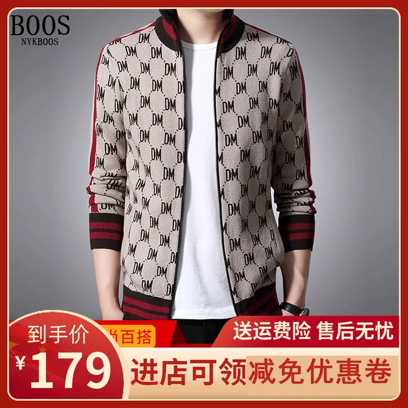 . [Phong cách mới mùa thu] áo len mềm cardigan phong cách Hàn Quốc hợp thời trang dệt kim áo khoác nam giản dị đẹp trai dòng quần áo - Áo len thể thao / dòng may