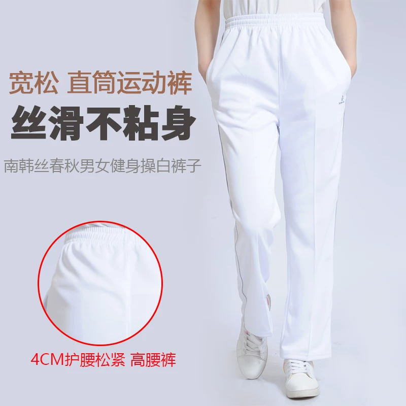 Quần thể thao màu trắng của phụ nữ mùa xuân và mùa thu quần có độ dày trung bình lụa Hàn Quốc chống mài mòn cho người trung niên và cao tuổi quần trắng quần âu nam - Quần thể thao