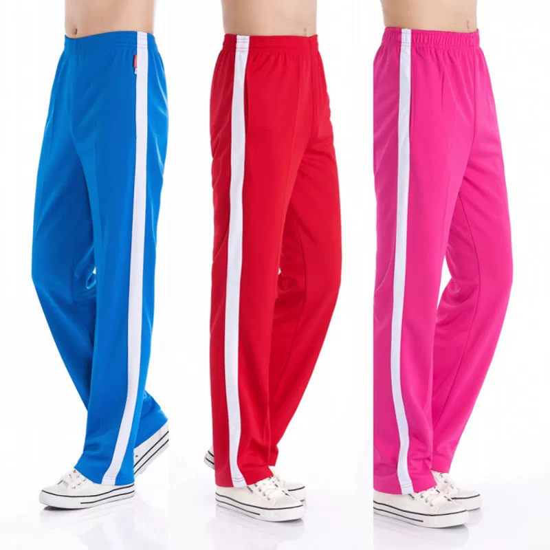 Quần dài thể thao trắng mùa hè cho nam và nữ Quần tây nam và nữ Jiamusi thể dục dụng cụ nhảy vuông Nam Hàn quần ống thẳng thun lụa - Quần thể thao