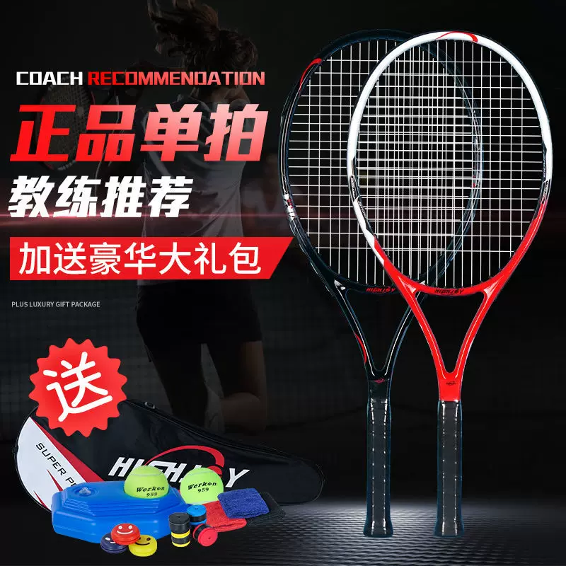 Vợt tennis đơn mới bắt đầu chuyên nghiệp carbon một nam và nữ sinh viên đại học với bộ đồ đôi huấn luyện viên phục hồi dây - Quần vợt