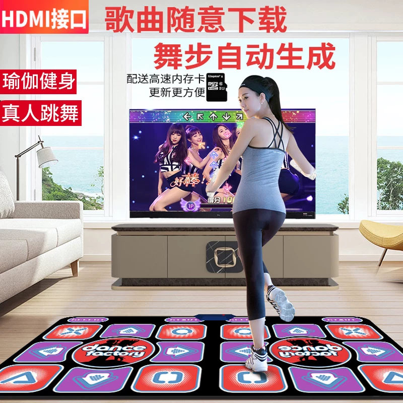 Thảm tập nhảy mát mẻ chạy bộ đốt mỡ giảm cân kép nhạc đơn với TV giao diện máy tính bảng điều khiển trò chơi somatosensory - Dance pad