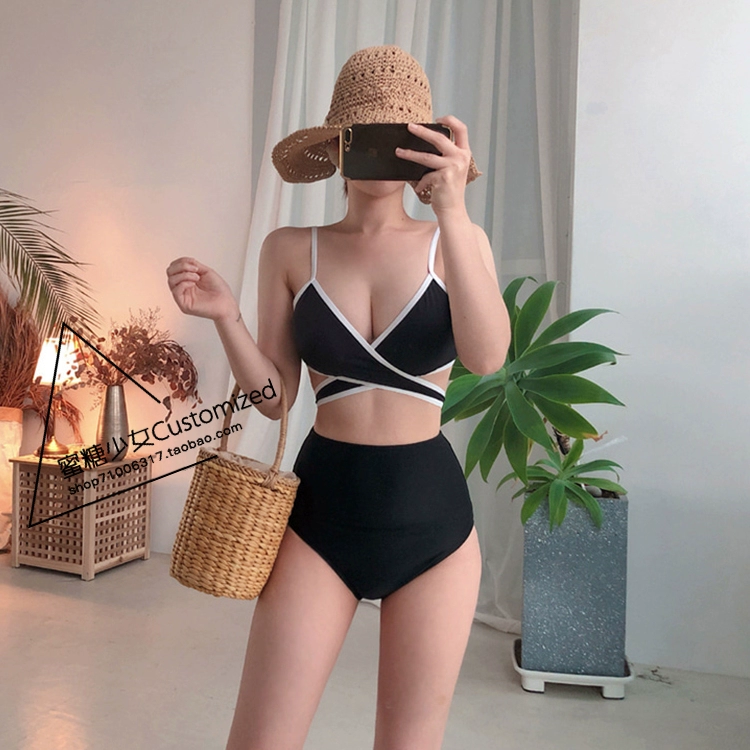 Hàn Quốc INS net nổi tiếng cùng cô gái nhỏ xinh tươi gợi cảm bikini ngực nhỏ suối nước nóng phong cách resort áo tắm nữ cạp cao - Bikinis