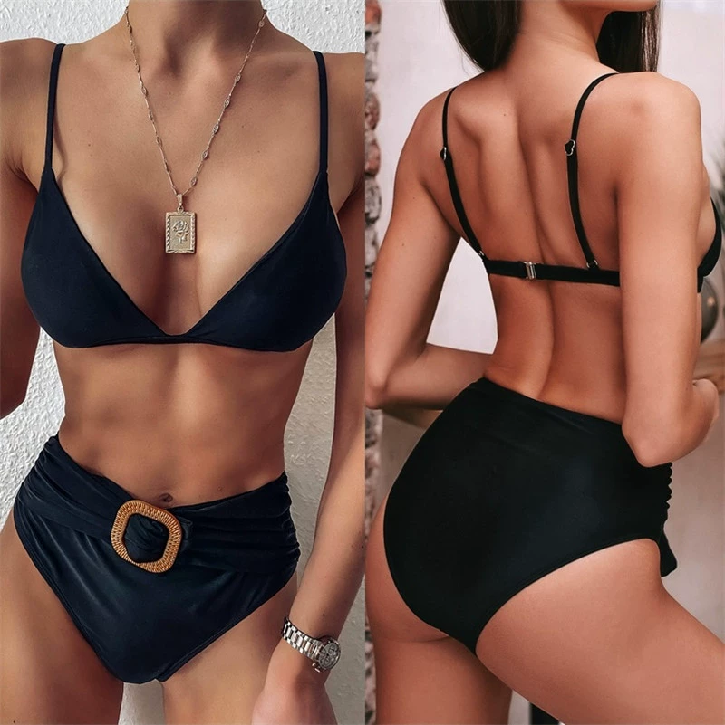 2020 bikini mới AliExpress phong cách nóng bỏng phụ nữ cạp cao màu đen áo tắm xẻ tà Đồ bơi sexy Âu Mỹ - Bikinis