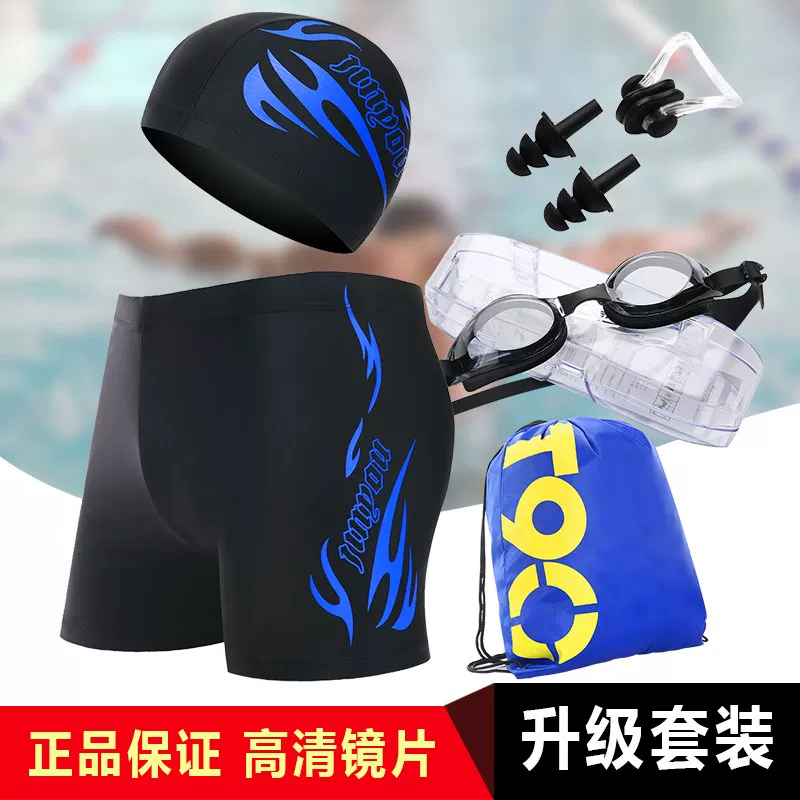 Gửi cho bạn bè kính bơi giải trí suối nước nóng kỳ nghỉ mềm mại hồ bơi quần bơi nam quần chống vụng về năm điểm nút tai - Nam bơi đầm