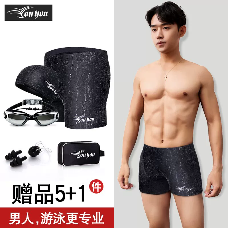 Quần bơi nam + mũ bơi góc phẳng suối nước nóng cỡ lớn áo tắm lỏng thời trang thiết bị kính bơi phù hợp với năm mảnh - Nam bơi đầm