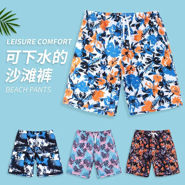 y quần khô nhanh chóng quần dài nam cộng với kích thước kỳ nghỉ bãi biển cặp vợ chồng võ sĩ năm điểm quần bơi hoa quần short phụ nữ quần - Quần bãi biển