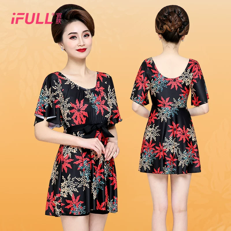 Nữ trung niên người lớn tính khí áo tắm nữ bảo thủ 40-50 tuổi một mảnh dưới nước một mảnh thời trang dì - Bộ đồ bơi One Piece