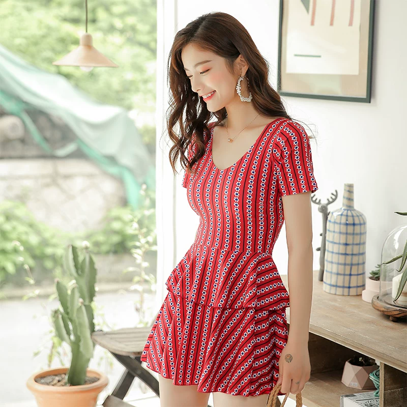 Bộ đồ bơi mới một mảnh áo tắm kiểu nước hoa nhỏ kiểu váy sinh viên Hàn Quốc góc phẳng được hỗ trợ bằng thép mỏng tập hợp áo tắm mùa xuân nóng bỏng cho nữ - Bộ đồ bơi One Piece