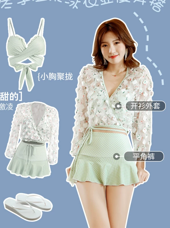Áo tắm nữ 2020 quần đùi xẻ tà ba mảnh mỏng, bảo vệ và che bụng đồ bơi tập hợp ngực nhỏ Hàn Quốc gợi cảm - Bộ đồ bơi hai mảnh