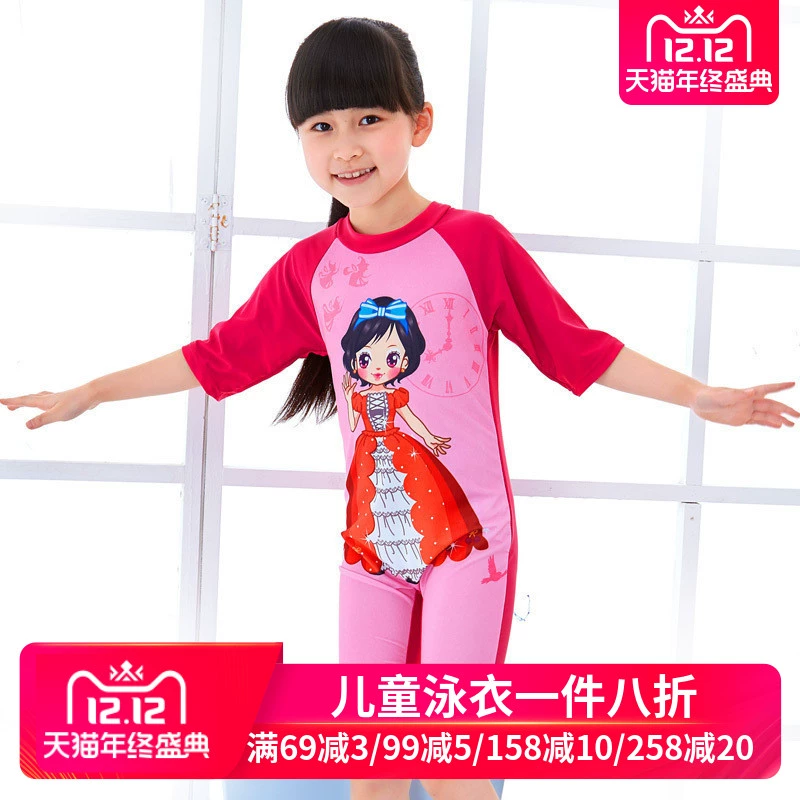 Áo tắm trẻ em, áo chống nắng nhanh khô, áo tắm trẻ em trung niên, áo tắm một mảnh hoạt hình bé gái, mũ miễn phí - Bộ đồ bơi của Kid