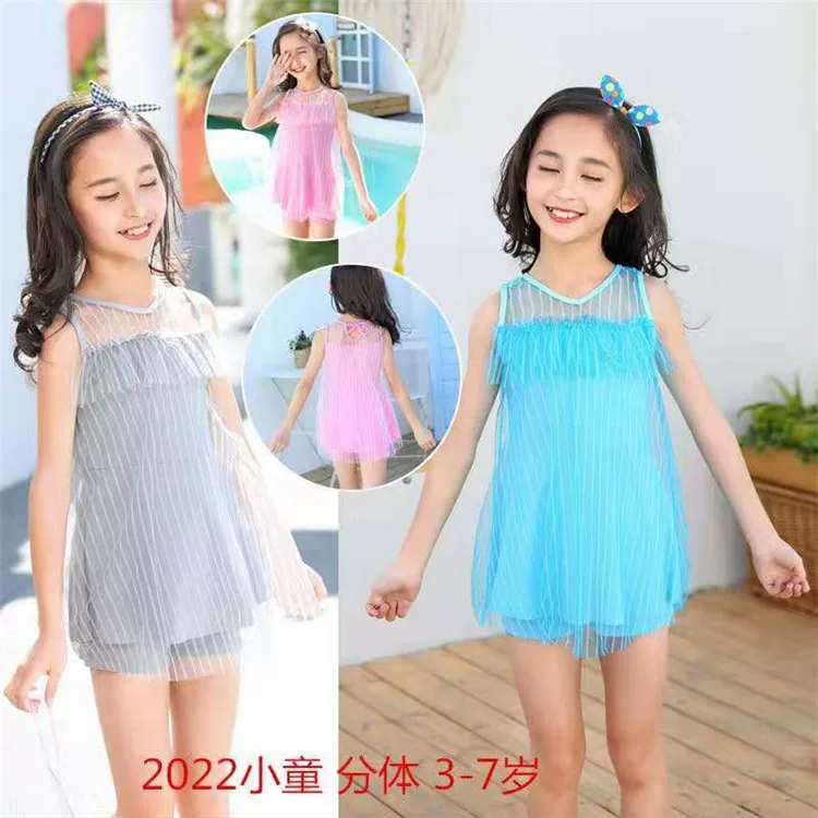 Đồ bơi cho bé gái, đồ bơi nữ phối ren sọc, nhiều tầng bé gái, áo lưới trẻ em trung niên, váy tutu học sinh dễ thương - Bộ đồ bơi của Kid