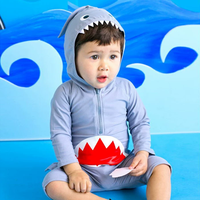Đồ bơi trẻ em, cá mập bé, trung niên, dài tay, kem chống nắng, một mảnh, nhanh khô, sứa, bé trai, áo tắm, đồ lặn - Bộ đồ bơi của Kid
