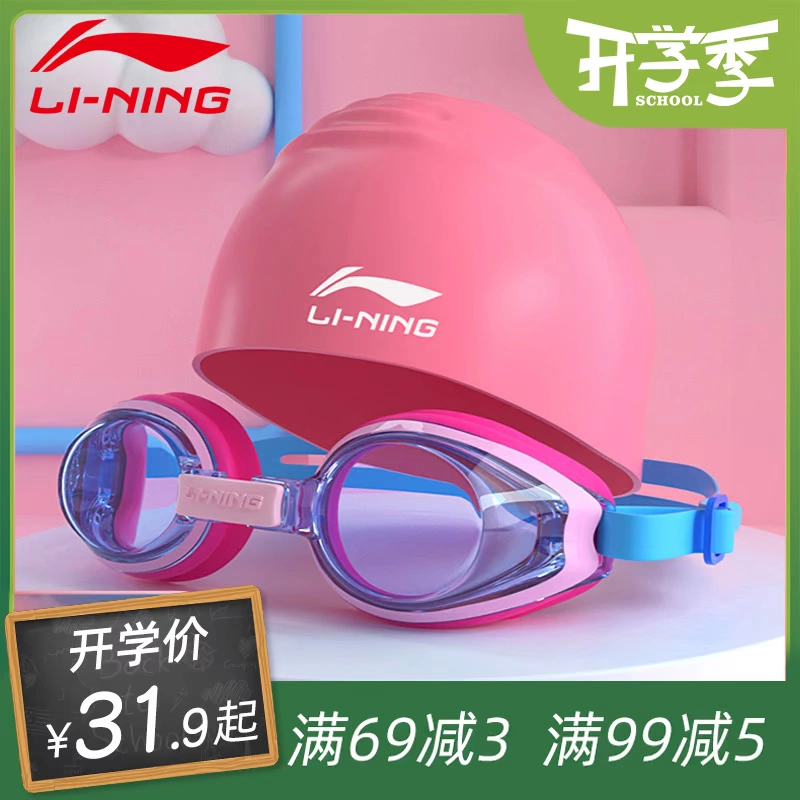 Kính bơi cho trẻ em Li Ning không thấm nước chống sương mù HD kính bơi hoàn toàn kèm theo cô gái trẻ em trai trẻ em bơi mũ phù hợp - Goggles
