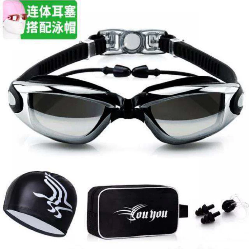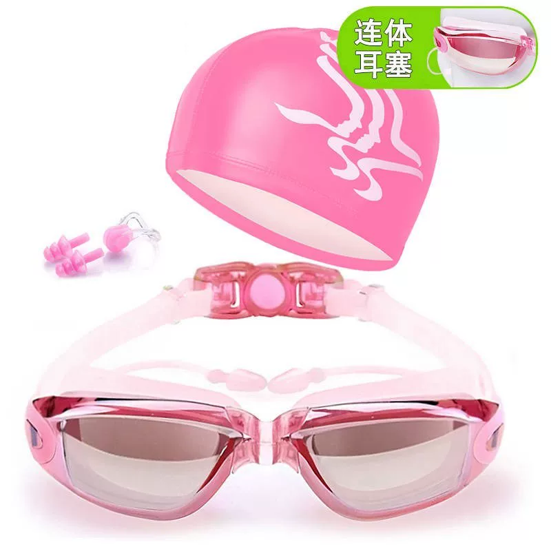 Thiếu niên nam nữ trẻ lớn học sinh trung học cơ sở kính bơi chống nước chống sương mù HD một với nút tai kính bơi mạ điện - Goggles