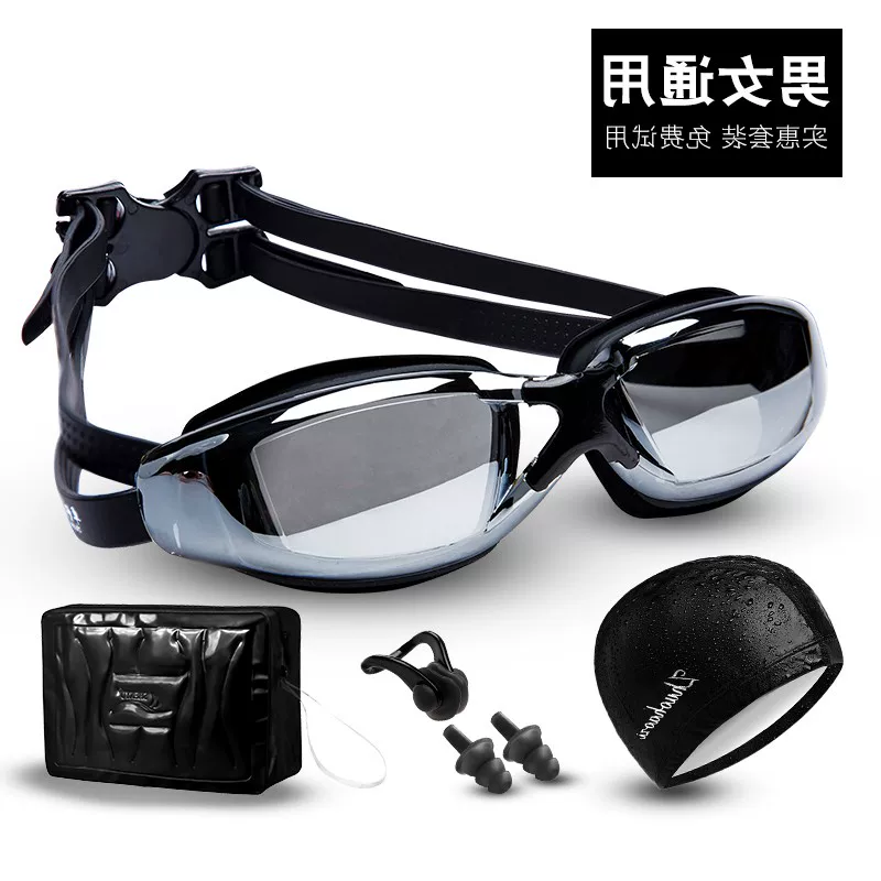 . Kính bơi nam và nữ độ nét cao chống sương mù không thấm nước mạ điện kính bơi khung lớn có nút bịt tai mũ bơi bộ túi bơi - Goggles