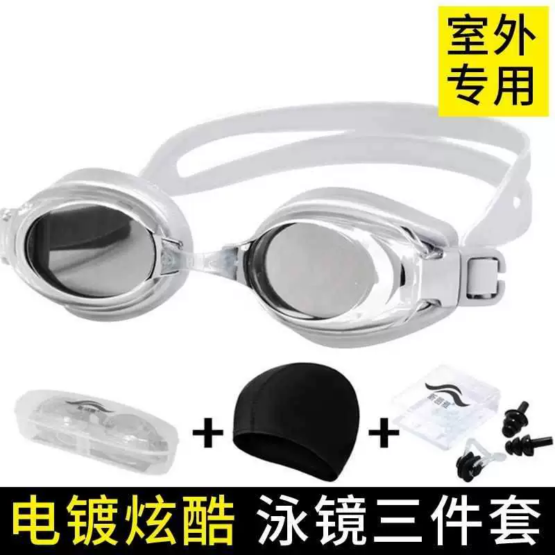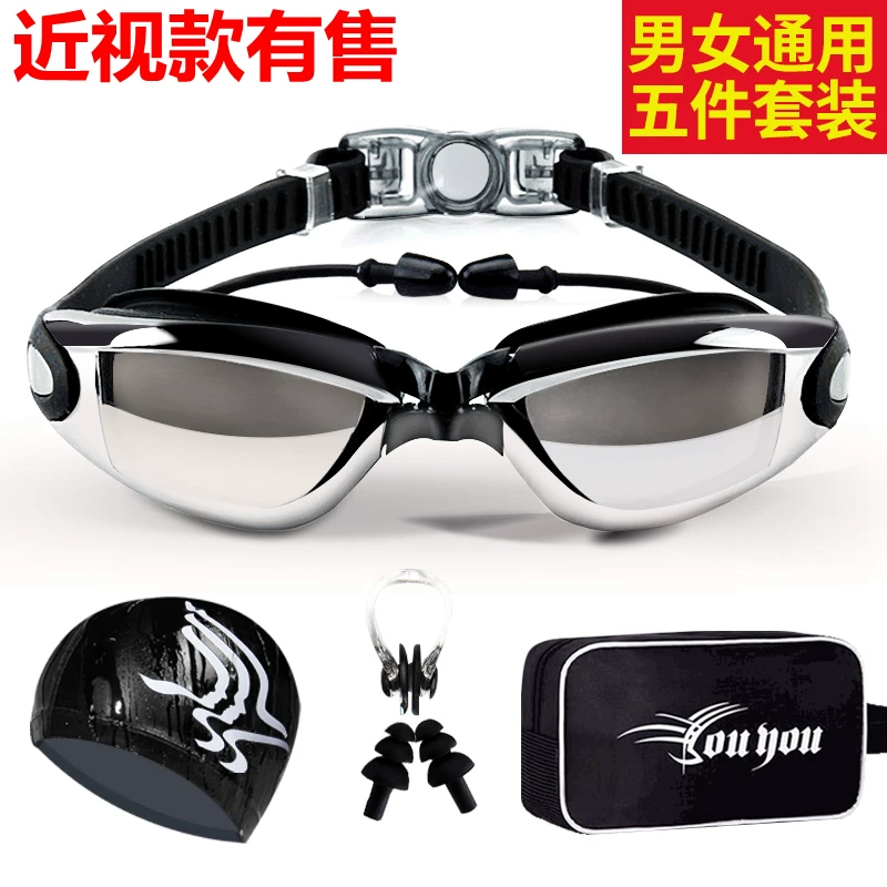 Kính bơi Kính cận thị HD Chống nước chống sương mù Kính bơi dành cho nam và nữ Kính mạ điện khung lớn có nút tai Kính gửi mũ - Goggles