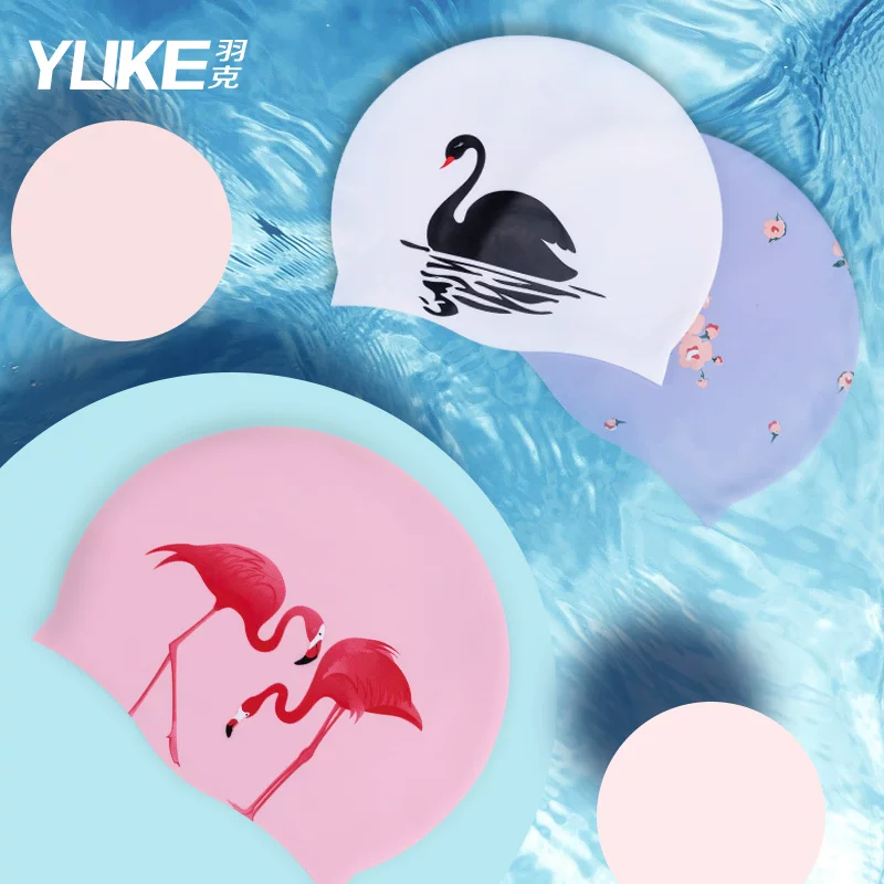 Mũ bơi silicon bảo vệ tóc dài bảo vệ tai phim hoạt hình in thiên nga mũ bơi không thấm nước chăm sóc tóc không đầu unisex - Mũ bơi