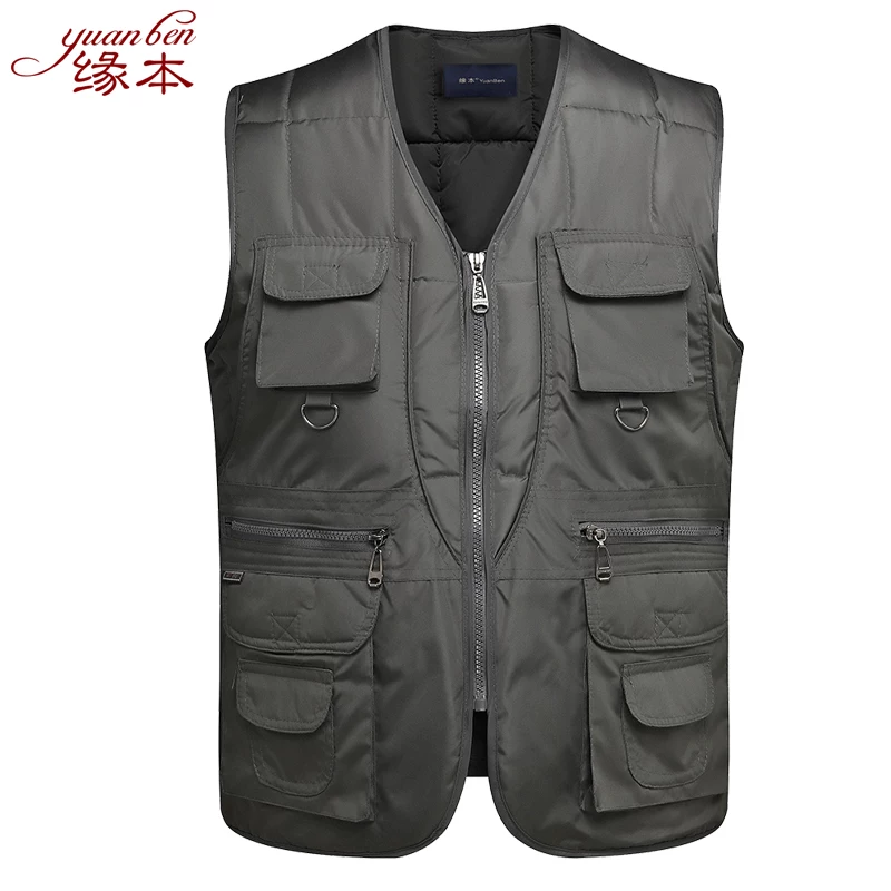 Vest ngoài trời trung niên và người cao tuổi nam mùa xuân và mùa thu chụp ảnh nhiều túi áo vest lỏng vest kích thước lớn giải trí vest câu cá - Dệt kim Vest