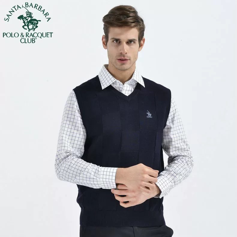 POLO Saint Paul truy cập chính hãng quần áo nam chính hãng len tinh khiết V-cổ vest khí thanh lịch PS13KS032 - Áo vest cotton