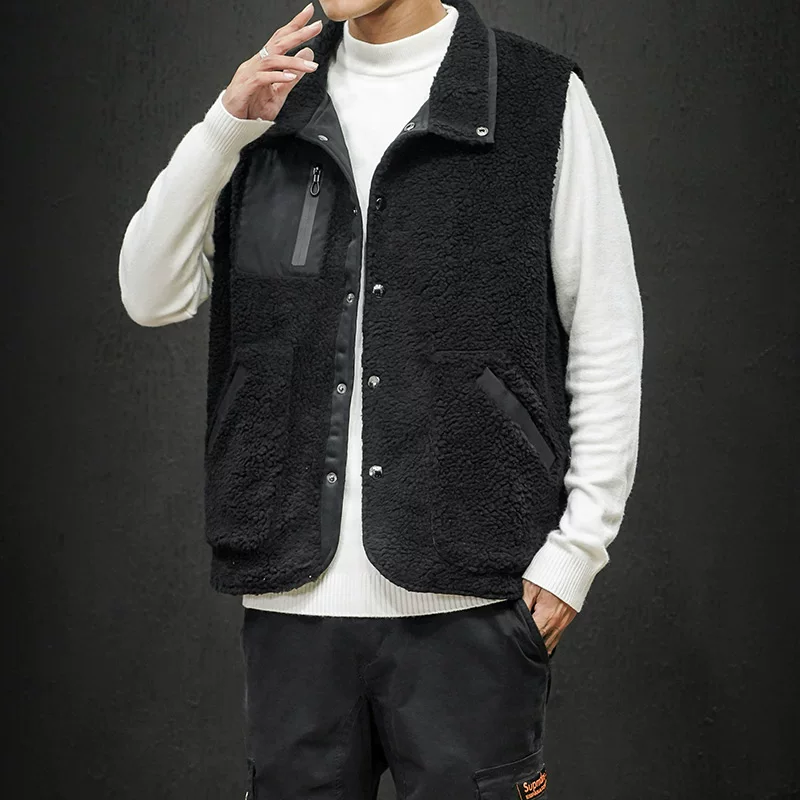 Áo len lông cừu mùa đông bằng vải nhung nam cộng với chất béo cộng với size phiên bản Hàn Quốc của áo vest béo hợp thời trang - Áo vest cotton