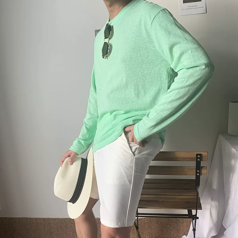 Áo thun dài tay phong cách Hàn Quốc áo thun mỏng cho nam mùa hè mỏng, chống nắng, lười, thoải mái, đa năng và thoáng khí - Áo phông dài