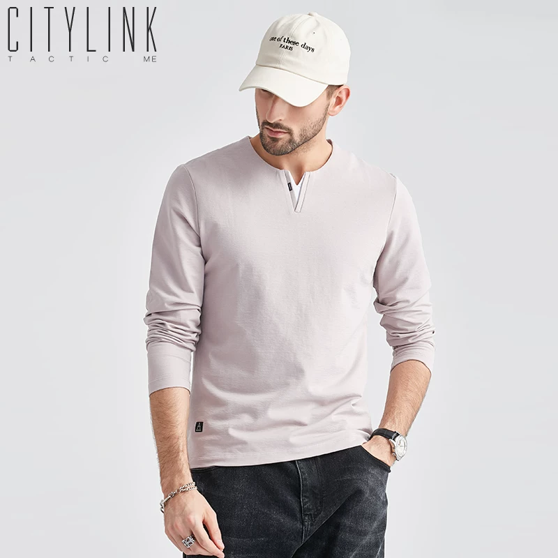 Áo thun nam dài tay mùa xuân và mùa thu cổ chữ V xu hướng quần áo mùa xuân có ngọn, áo dệt kim chạm đáy, quần áo nam, quần áo mùa thu - Áo phông dài