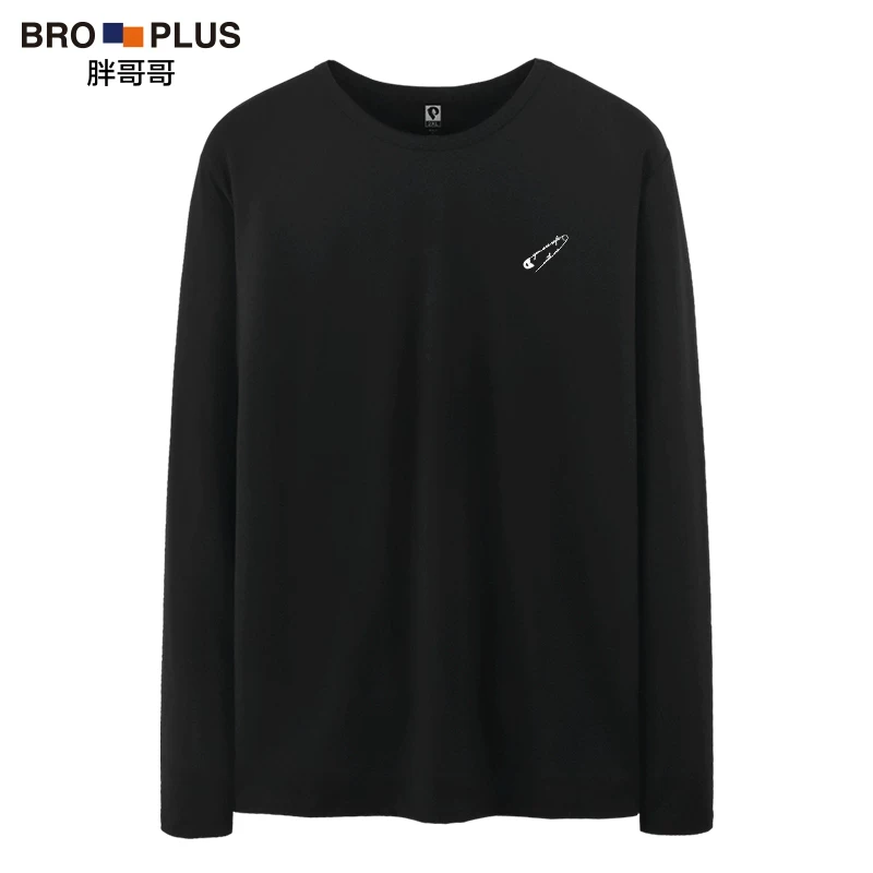 Anh trai mập cộng với size áo thun dài tay nam mùa thu đơn giản từ bi lỏng lẻo cộng với áo béo tăng mỡ - Áo phông dài