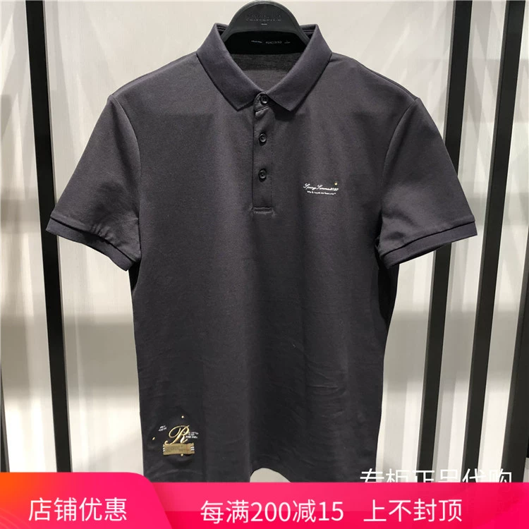 B1DBA2416 Peacebird Men 2020 Summer Grey Letter Thêu Business Casual Áo sơ mi ngắn tay POLO - Polo