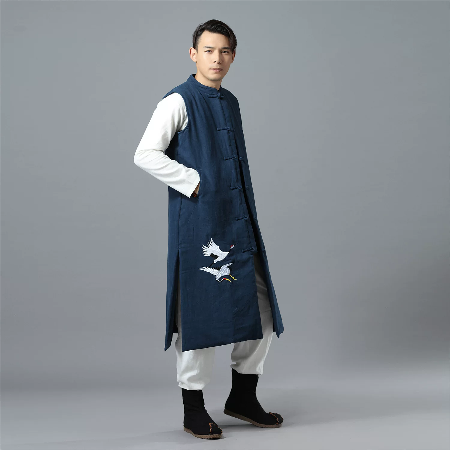 Bộ đồ cotton và vải lanh nam Trung Quốc mùa thu và mùa đông bằng vải cotton Tang phù hợp với áo đứng cổ áo khóa dài áo kiểu dân tộc cần cẩu thêu quần áo cotton - Lót