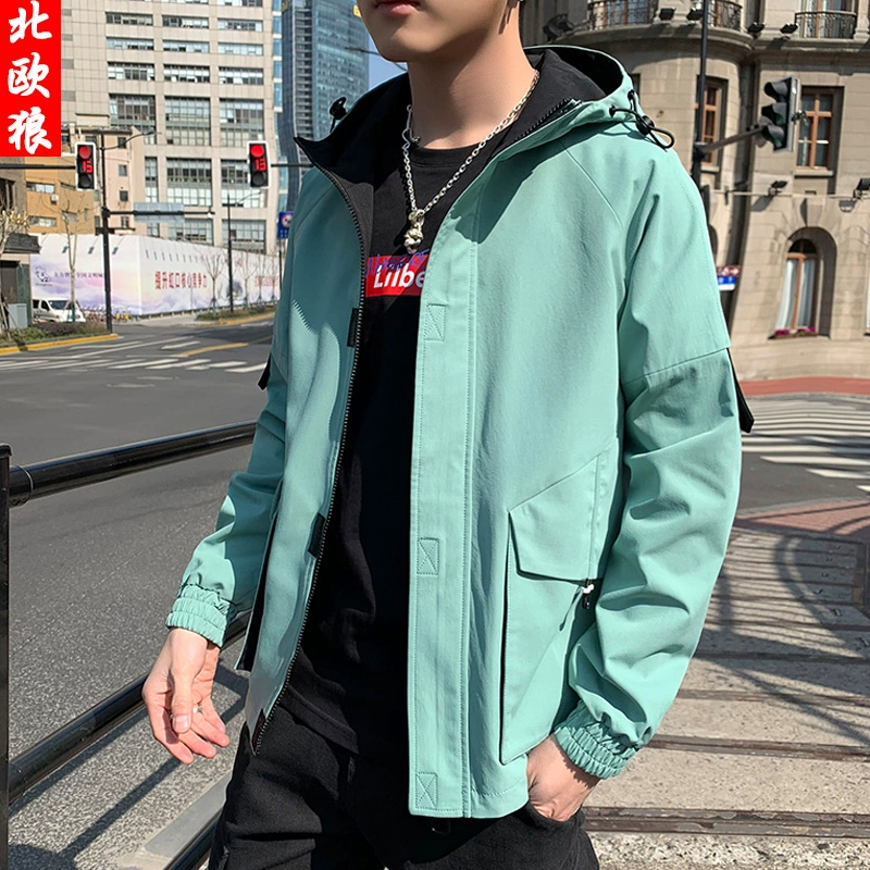 Áo khoác mùa thu mỏng nhẹ Thời trang nam đa năng trùm đầu màu sắc phù hợp với áo khoác Áo khoác hợp thời trang 1743 - Áo khoác