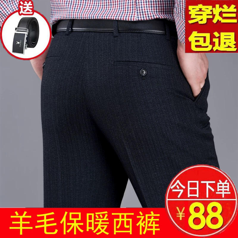 Quần len nam 2019 mùa thu và mùa đông dày phần thẳng không sắt kinh doanh giản dị trung niên cha phù hợp với quần len - Suit phù hợp