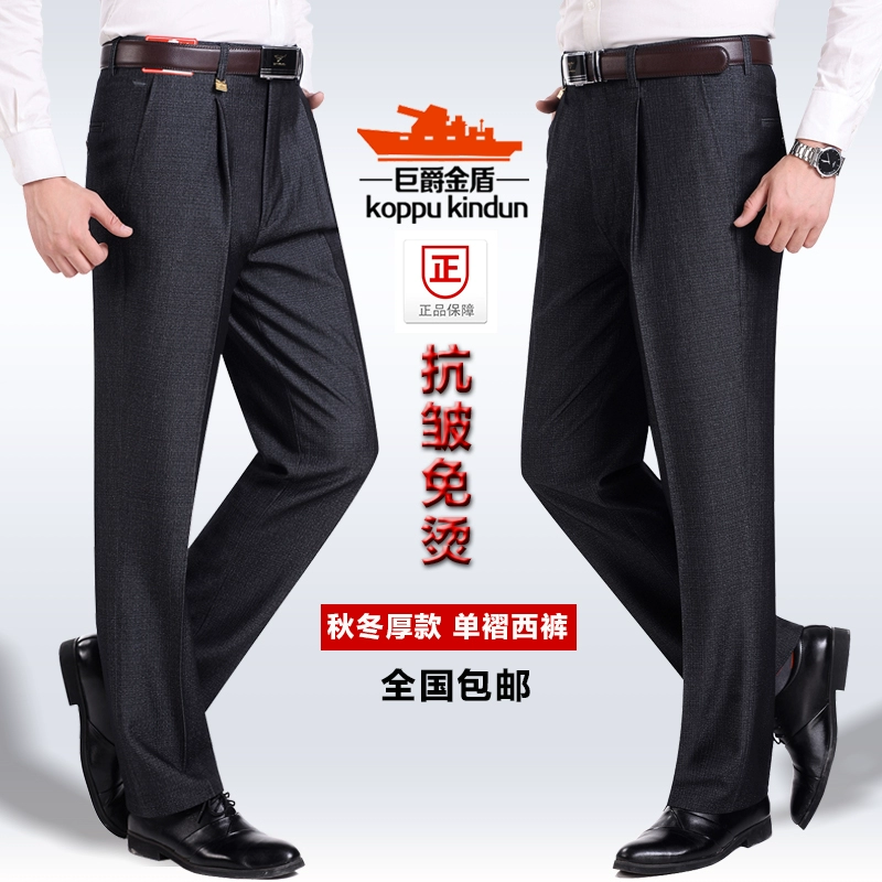 Quần Jujue Golden Shield mùa thu và mùa đông quần dày nam đơn xếp li giữa eo cao kinh doanh bình thường không phù hợp với quần dài quần trung niên - Suit phù hợp