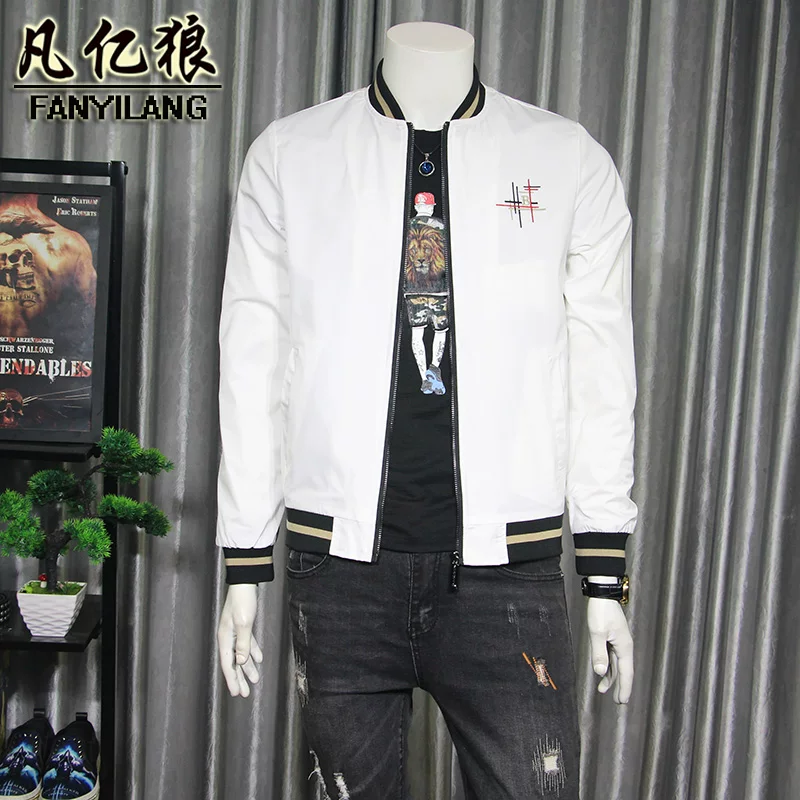 Áo khoác nam mùa xuân và mùa thu Hàn Quốc xu hướng giản dị áo khoác trắng trẻ trung thời trang áo len mỏng đồng phục nam - Đồng phục bóng chày