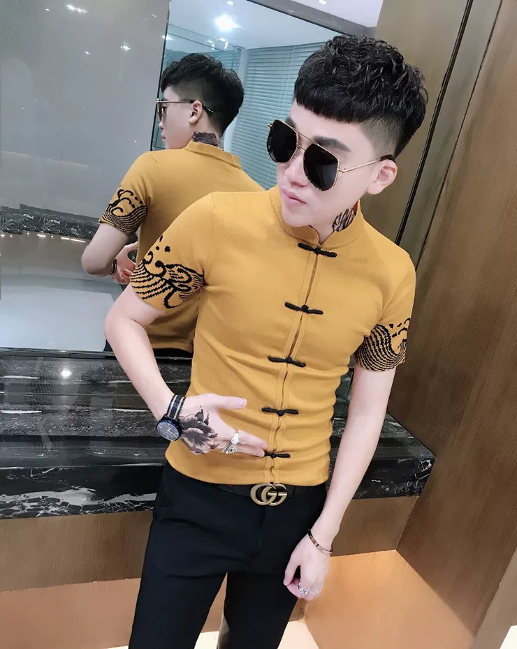 Phong cách Trung Quốc Tang nam phù hợp với áo len ngắn tay 2020 mùa xuân và mùa hè mới - Hàng dệt kim