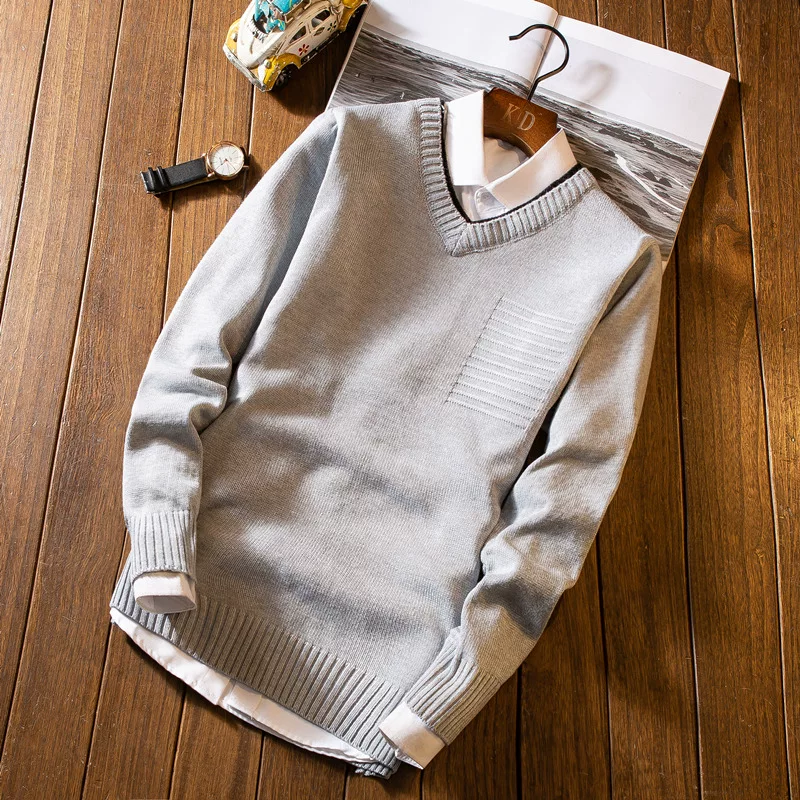 Áo len nam mùa thu đông phiên bản Hàn Quốc theo xu hướng cổ chữ V dày 2020 mới dệt kim đáy quần áo nam - Hàng dệt kim