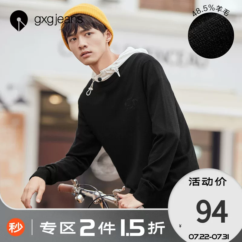 gxgjeans nam mùa thu cổ tròn thêu áo len nam đan áo len Hàn Quốc áo len cổ thấp xu hướng nam - Hàng dệt kim