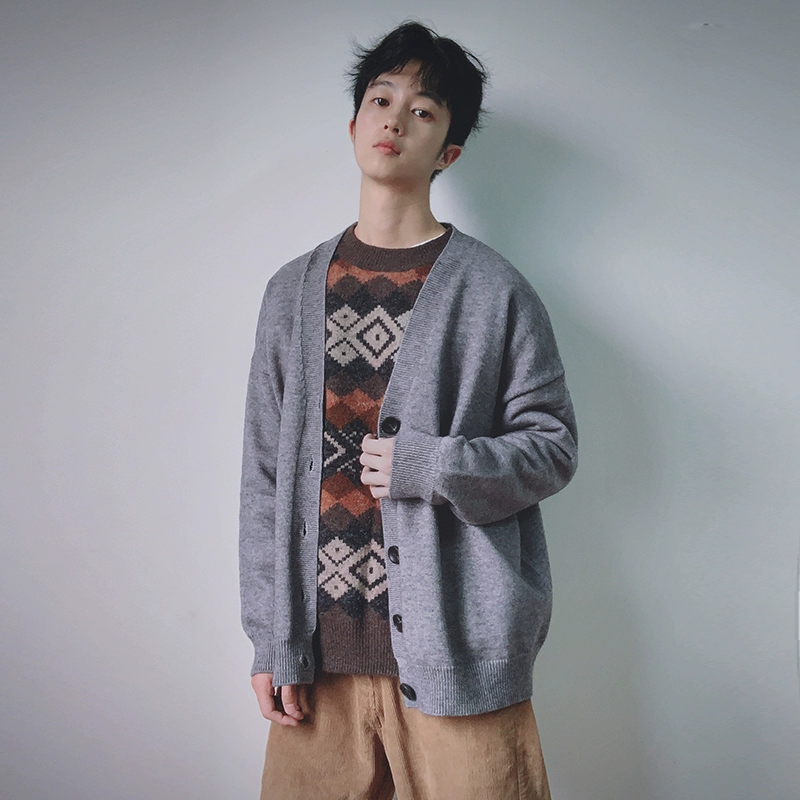 Áo khoác mùa thu nam phong cách Hàn Quốc buông xõa giản dị xuân hè 2020 mới áo len dài tay áo len nam - Cardigan