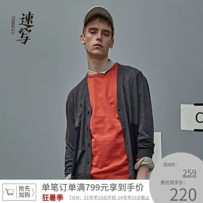 [Cùng một đoạn trong trung tâm thương mại] Phác thảo nam 2017 mùa xuân và mùa hè khâu xu hướng len dài cardigan 9HB81019 - Cardigan