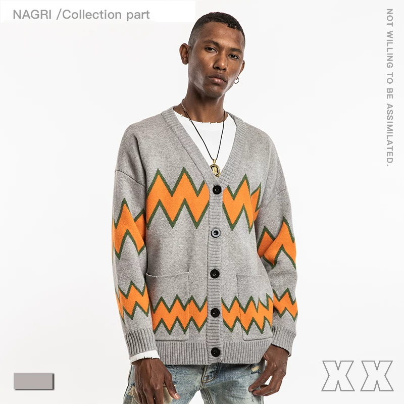 Xu hướng cổ chữ V in áo len nam phiên bản Hàn Quốc của áo len xu hướng lỏng Hồng Kông phong cách cá tính áo khoác học sinh lười biếng - Cardigan