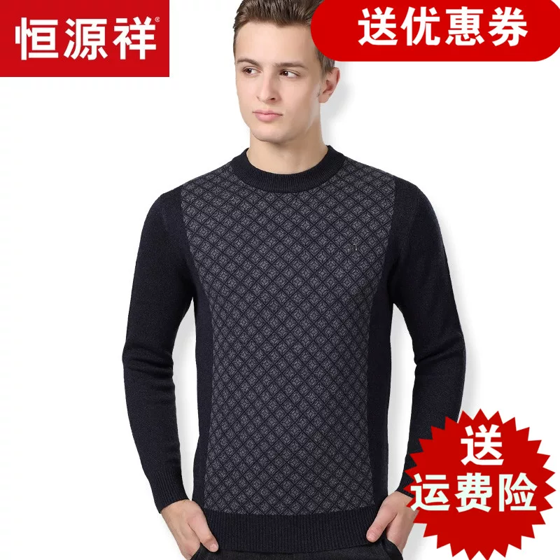 Hengyuanxiang dày áo len cổ tròn nam trung niên và người cha kinh doanh già mặc áo len mùa thu và mùa đông áo len nam dài tay - Áo len