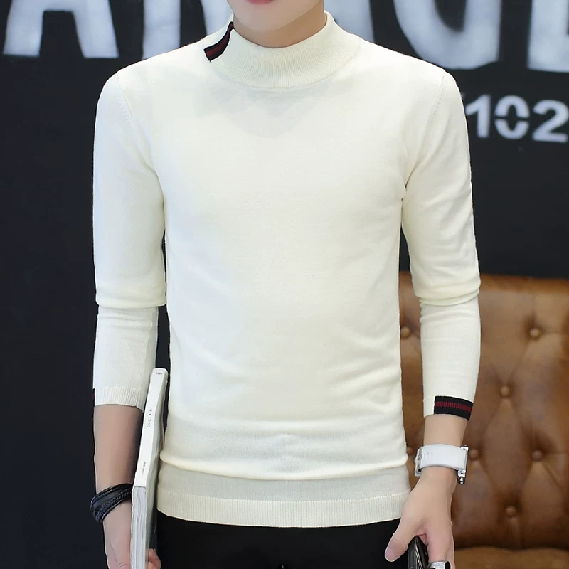 Mùa thu và mùa đông áo len nam mới Áo len nam Hàn Quốc Áo thun mỏng bán cao cổ áo len - Kéo qua