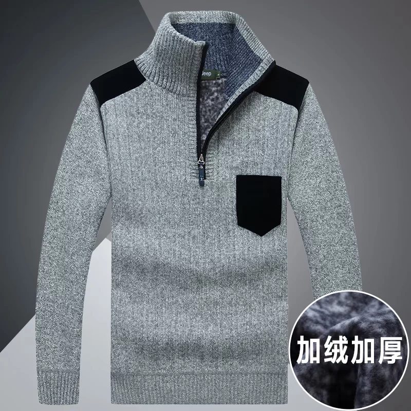 Áo len nam mùa đông Áo khoác dày cộng với áo len lỏng Áo len nam giới giản dị Hàng dệt kim nam Cổ áo đứng cổ áo - Kéo qua