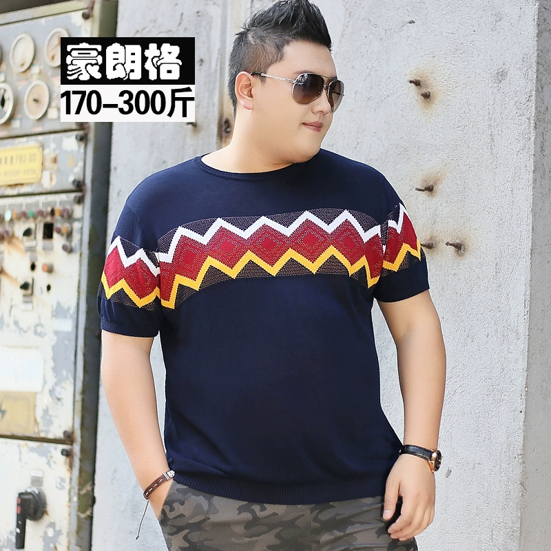 Thêm áo thun béo và béo mùa hè tay ngắn nam dệt kim áo len cổ tròn chàng béo cộng với size áo len áo thun - Kéo qua