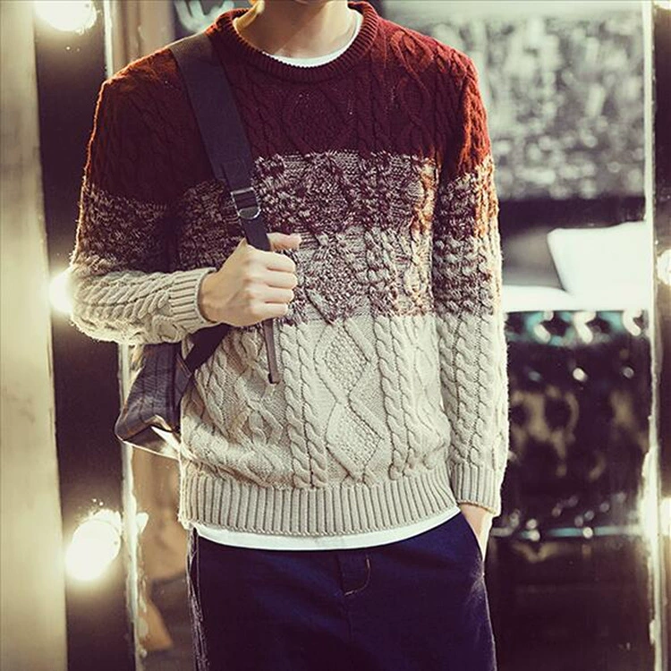 Mùa thu và mùa đông nam mới dày len xoắn màu áo len Nhật Bản ấm áp cổ tròn áo len áo len hợp thời trang nam - Kéo qua